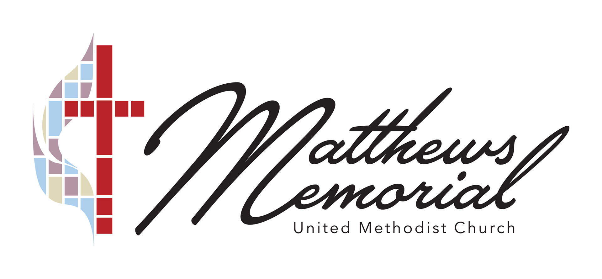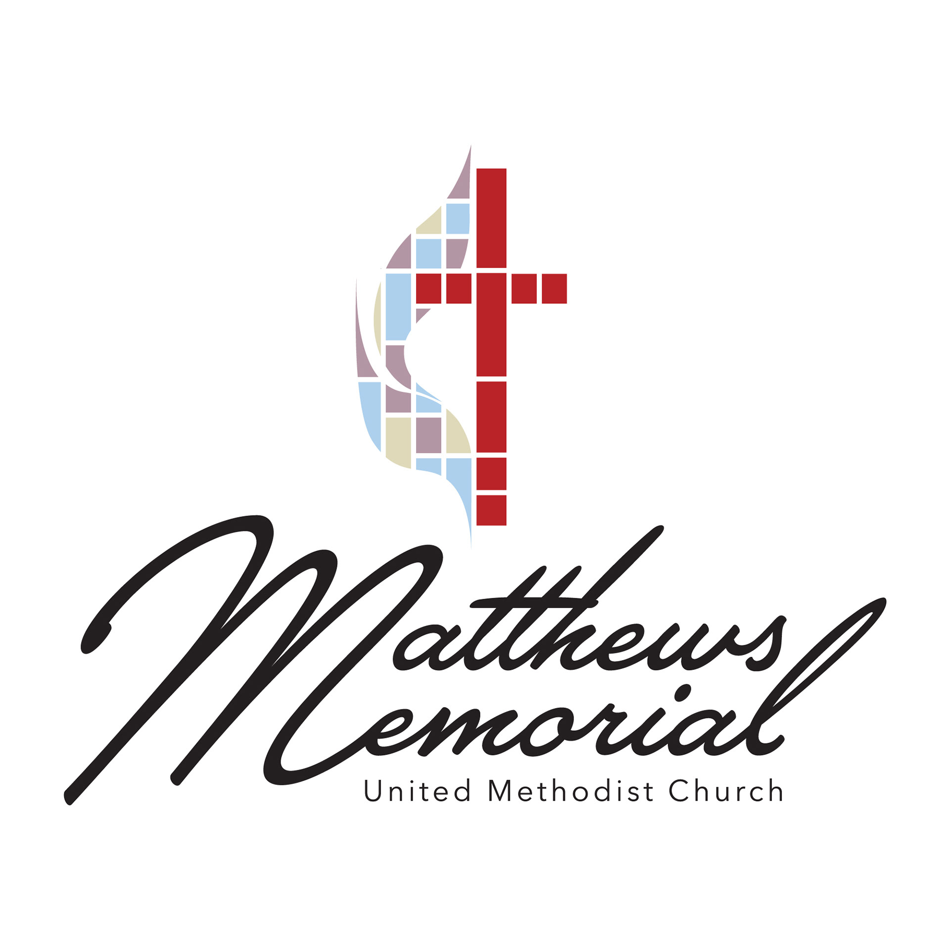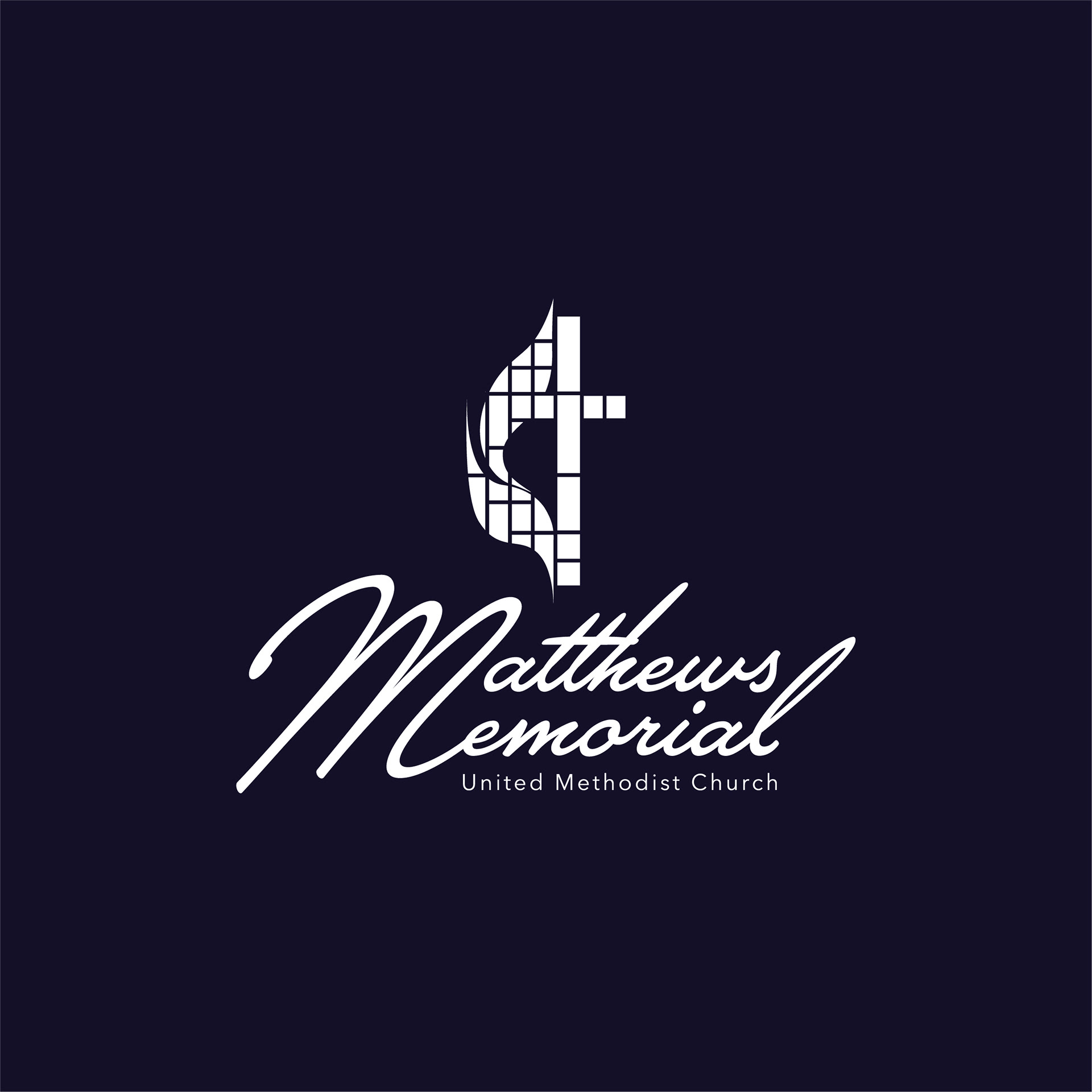 Logo design for Matthews Memorial United Methodist Church, drawing inspiration and colors from a prominent stained-glass window in the church's sanctuary.